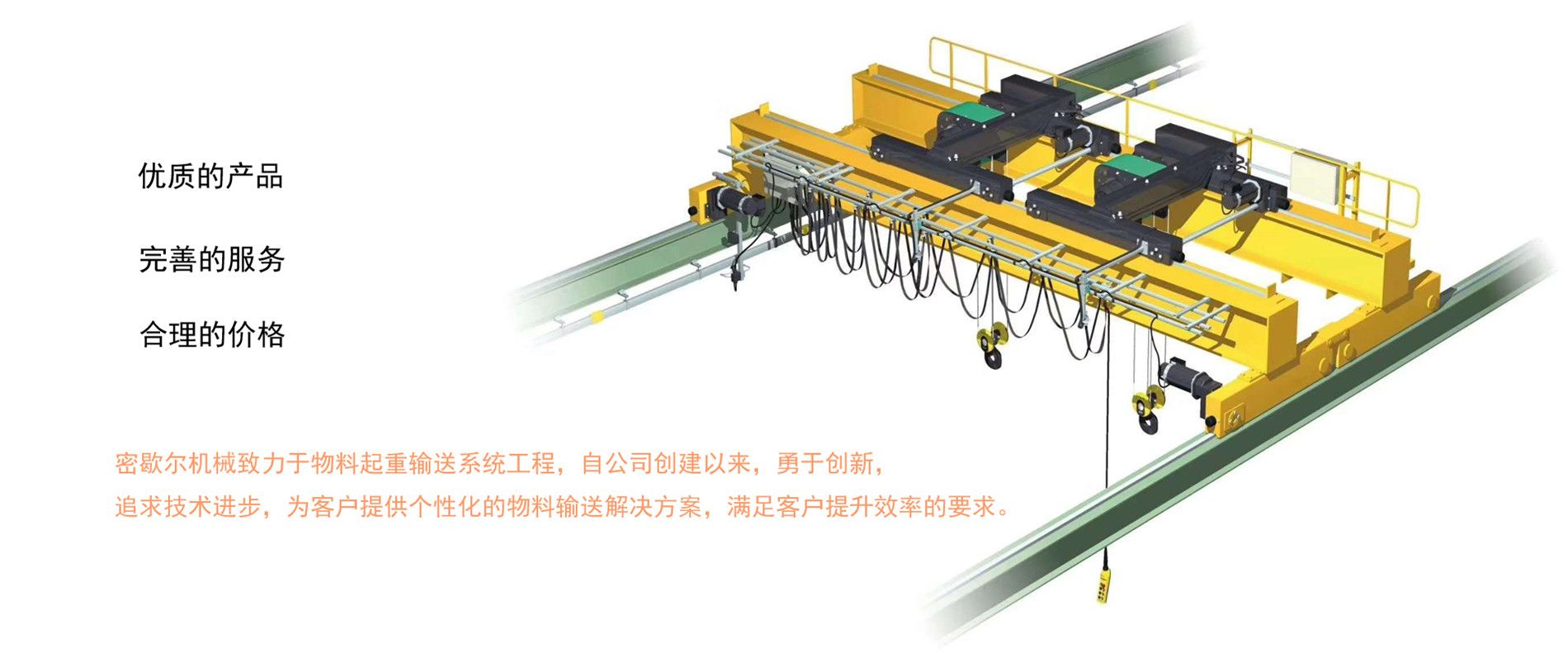 密歇爾起重機(jī)械(杭州)有限公司,作為專業(yè)的電動葫蘆和起重機(jī)及物料起重輸送系統(tǒng)設(shè)計、制造和銷售綜合服務(wù)商,自公司創(chuàng)建以來,勇于創(chuàng)新,追求技術(shù)進(jìn)步,并依托我們的技術(shù)研發(fā)中心,現(xiàn)已成為國內(nèi)起重機(jī)械行業(yè)的新興優(yōu)秀企業(yè)。
